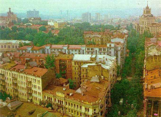 Перспектива вулиці з верху готелю “Україна”. Наліво на передньому плані йде вул.СтаніславськогоРозмір зображення: 680:492 піксел Джерело: Звід пам’яток історії і культури України. – К.: 1999 р., т. 1 (Київ), с. 388. |