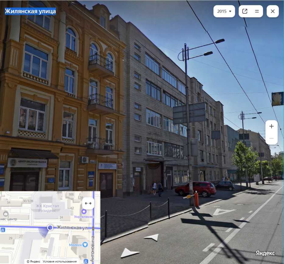 2015 р. Загальний вигляд з північного сходуРозмір зображення: 934:870 піксел Фото з панорам Яндекса 2015 р. Будинок ще стояв на той час. |