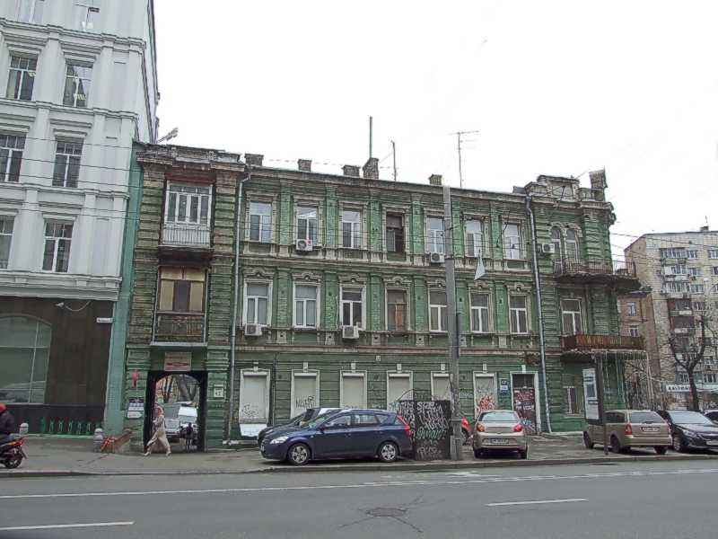 2021 р. Фасад по вул. Жилянській Розмір зображення: 800:600 піксел Фото М. І. Жарких, 31 березня 2021 р. Вкладені елементи Вікно 3-го поверху Вікно 2-го поверху