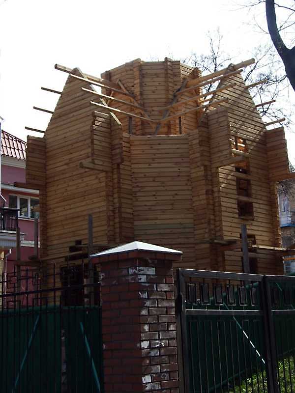 2009 р. Каплиця у дворі в процесі будівництваРозмір зображення: 600:800 піксел 7 квітня 2009 р. Фото М.І.Жарких. |