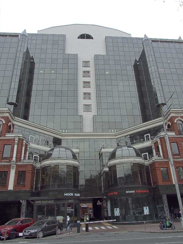 2021 р. Центральна частина головного фасадуРозмір зображення: 600:800 піксел Фото М. І. Жарких, 31 березня 2021 р. |