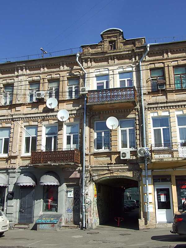2020 р. Центральна частина головного фасадуРозмір зображення: 600:800 піксел Фото М. І. Жарких, 16 березня 2020 р. |