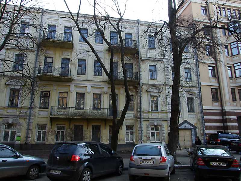 2012 р. Права частина головного фасаду Розмір зображення: 800:600 піксел 19 березня 2012 р. Фото М.І.Жарких. Вкладені елементи Фрагмент фасаду з порталом Загрозлива тріщина
