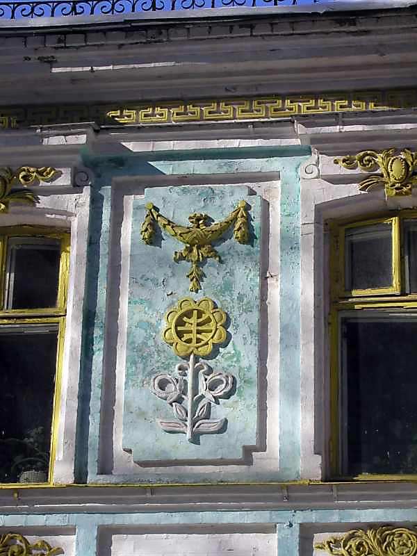Фрагмент фасаду 2-го поверху Розмір зображення: 600:800 піксел 20 лютого 2006 р. Фото М.І.Жарких. Попередня сторінка | Вище | Наступна сторінка