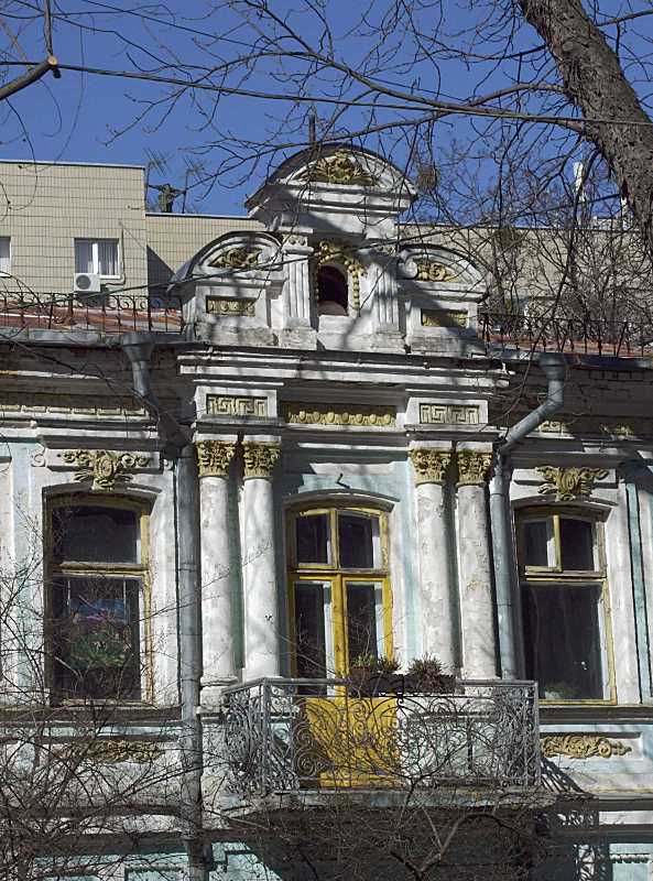 Фрагмент 2-го поверху (праворуч) Розмір зображення: 593:800 піксел Фото М. І. Жарких, 16 березня 2020 р. Вкладені елементи Правий фронтон