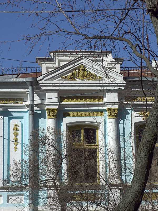 Фрагмент 2-го поверху (ліворуч) Розмір зображення: 600:800 піксел Фото М. І. Жарких, 16 березня 2020 р. Вкладені елементи Лівий фронтон
