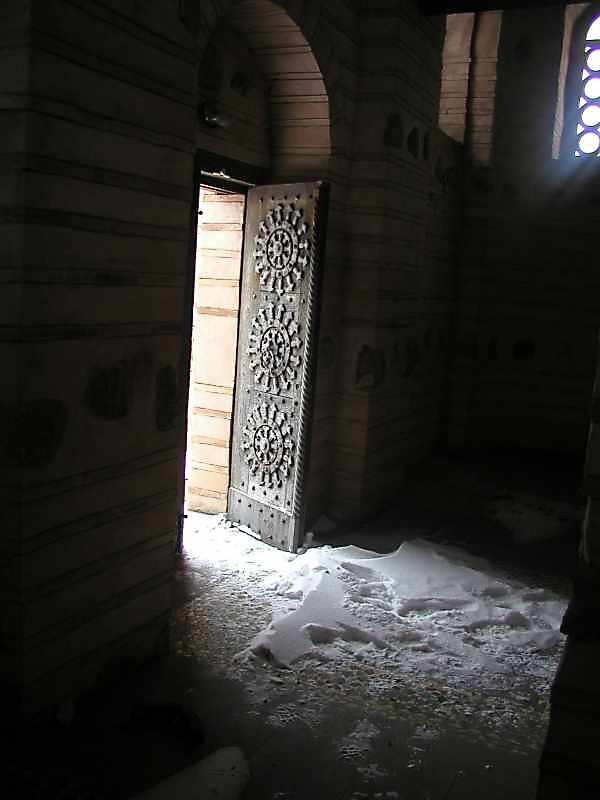 2005 р. Західний вхід до церкви. Сніг на підлозіРозмір зображення: 600:800 піксел 1 лютого 2005 р. Фото М.І.Жарких. |