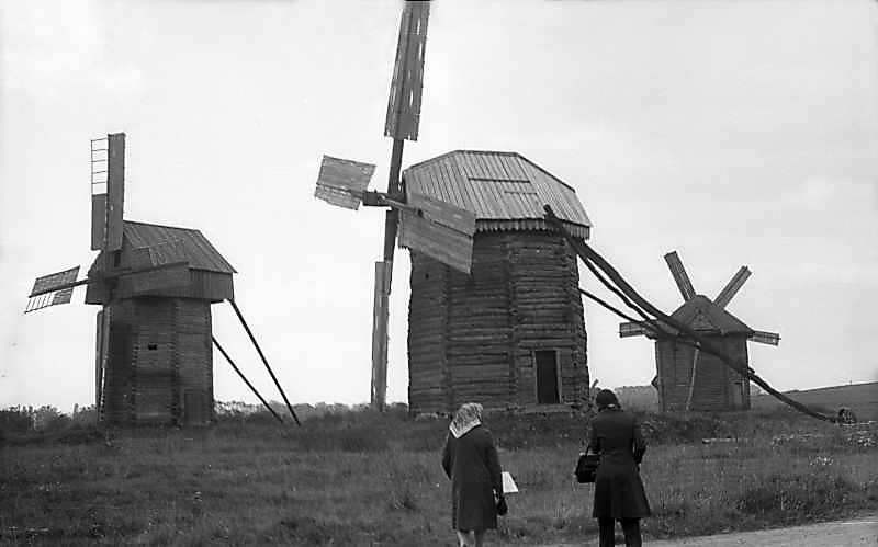 1976 р. Загальний вигляд групи вітряків з півночіРозмір зображення: 800:499 піксел 1976 р. 10 жовтня. Фото М.І.Жарких. Негатека, № A206-23. |