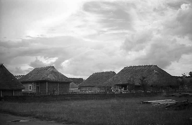 1979 р. Загальний вигляд з боку дороги (фрагмент повітки, хата, клуня)