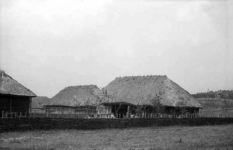 1977 р. Загальний вигляд (ліворуч – фрагмент хліву, правіше – гумно 4)Розмір зображення: 800:513 піксел 1977 р. 16 червня. Фото М.І.Жарких. Негатека, № A308-37. |
