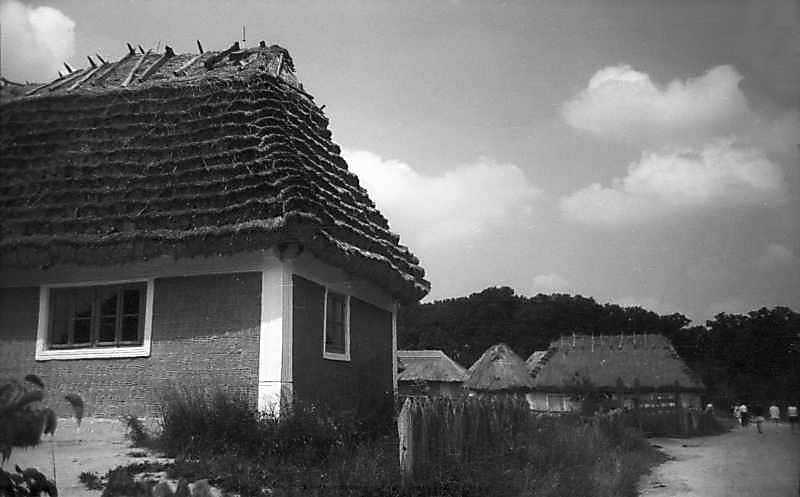 1977 р. Перспектива вулиці (хата з Кадіївців – садиба з Яришева)Розмір зображення: 800:497 піксел 1977 р. 16 червня. Фото М.І.Жарких. Негатека, № A307-19. |