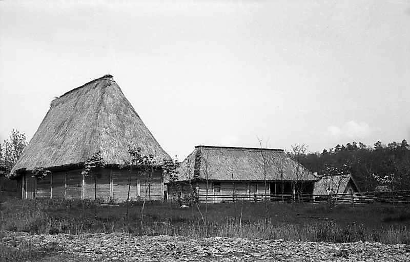 1977 р. Клуня, повітка і льох. Вигляд з боку городуРозмір зображення: 800:513 піксел 1977 р. 8 травня. Фото М.І.Жарких. Негатека, № A258-27. |