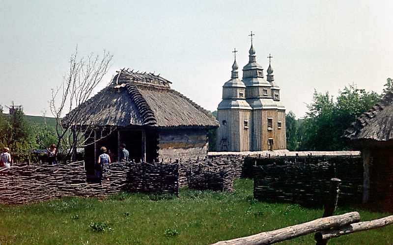 1977 р. Загальний вигляд комори на тлі церкви із с.ЗабубинціРозмір зображення: 800:500 піксел 1977 р. 8 травня. Фото М.І.Жарких. Слайдотека. |
