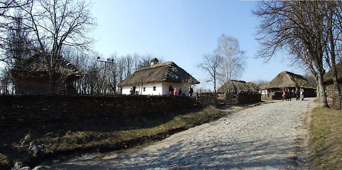 2011 р. Загальний вигляд з боку вулиці (комора, хата, повітка 2, повітка 1)Розмір зображення: 1200:598 піксел 30 березня 2011 р. Фото М.І.Жарких. |