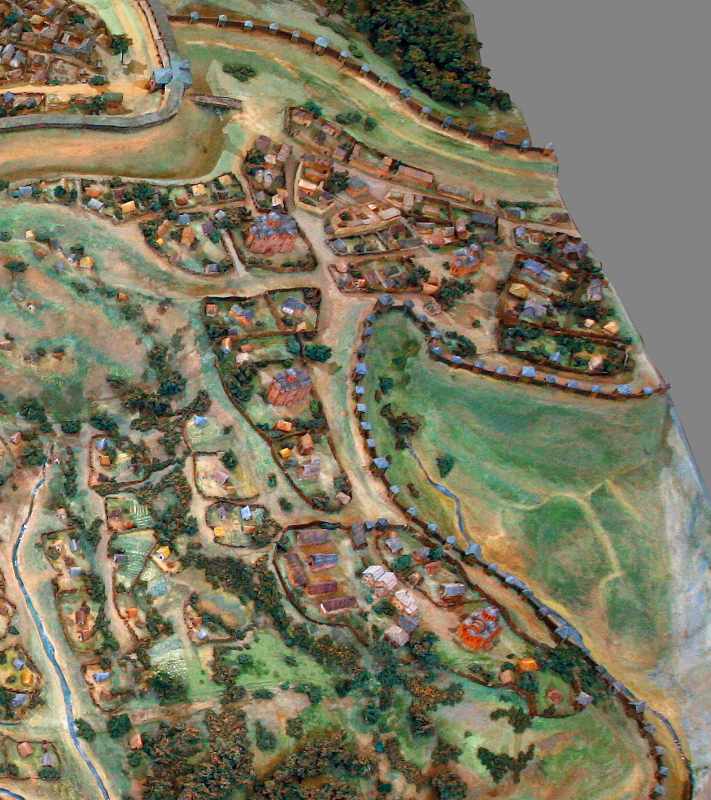 В лівому верхньому куті – Жидвіська брама города Ярослава, перед нею – міст. Нижче моста – церква 1887 р., праворуч від неї – церква 1967 р. Нижче церкви 1887 р. – церква 1947 р., ще нижче – церква 1878 р.