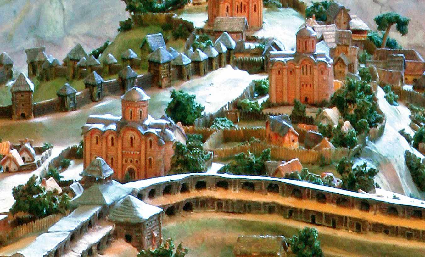 На передн,ому плані – лінія укріплень города Ярослава з Жидівською брамою. Вище брами – церква 1887 р., праворуч від неї – церква 1647 р., біля верхнього краю – фрагмент церкви 1947 р.