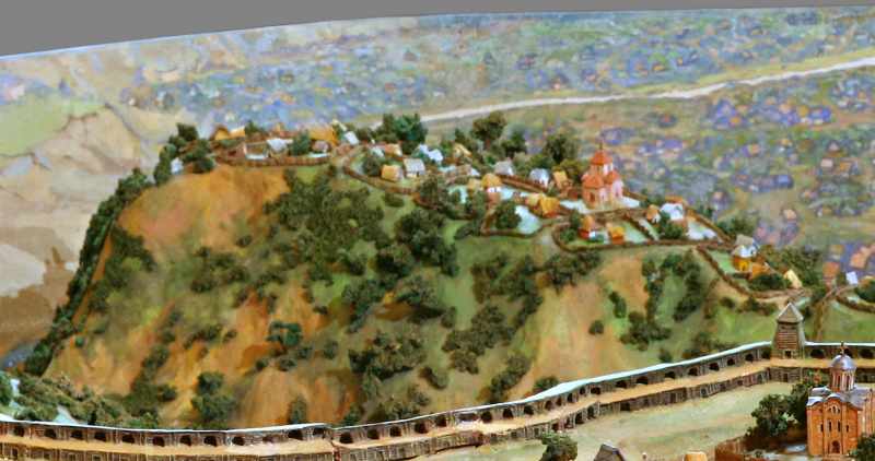 Вигляд з південного заходуРозмір зображення: 800:422 піксел На передньому плані – лінія укріплень городу Ярослава, у правому нижньому куті – церква 1896 р. |