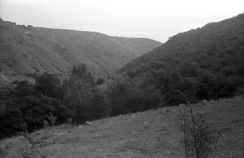 1995 р. Долина струмка Окунь. Вигляд з південного заходуРозмір зображення: 800:517 піксел 1995 р. 4 серпня. Фото М.І.Жарких. Негатека, № 875-20. |