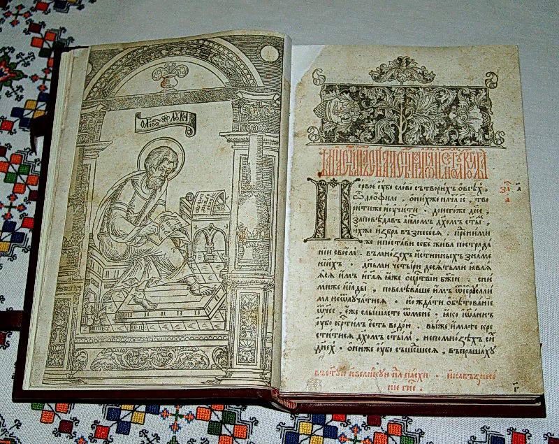 Апостол (Льв.: 1574 р.).Розмір зображення: 800:635 піксел Апостол, друк Івана Федорова (Льв.: 1574 р.). Нині в музеї-замку Ланцуті. |