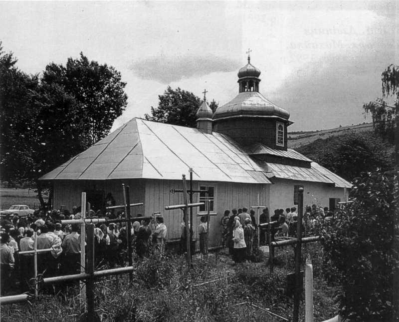 1992 р. Загальний вигляд з позиції А3Розмір зображення: 800:645 піксел Світлина І. Синкальського 1992 р. Джерело: Слободян В. Церкви України: Перемиська єпархія. – Льв.: 1998 р., с. 466. Здається, це таки каплиця Лазаря. |
