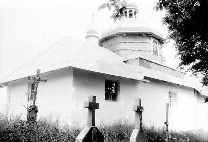 1990 р. Вівтар і нава. Вигляд з позиції А1Розмір зображення: 800:547 піксел 1990 р. 15 червня. Фото М.І.Жарких. Негатека, № 631-08. |