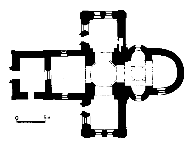 План церкви Онуфрія в Лаврові. XV ст. Обміри П. Макушенка. Джерело: Історія українського мистецтва. – К.: Наукова думка, 1967 р., т. 2, с. 50.