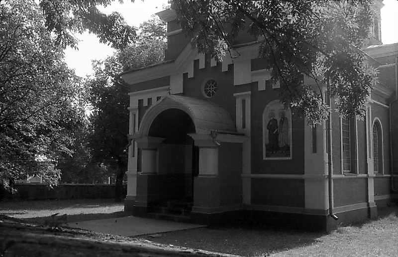 1995 р. Головний фасад. Вигляд з позиції А3Розмір зображення: 800:516 піксел 1995 р. 1 серпня. Фото М.І.Жарких. Негатека, № 873-10. |