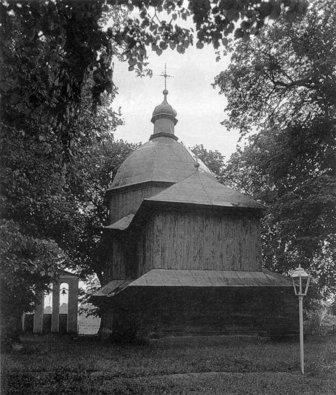 Давніша дерев’яна церква походила, ймовірно, з XVIII ст. У 1874 р. на її місці збудовано нову, теж дерев’яну, будівлю і встановлено в ній новий іконостас. Це тризрубна од-новерха церква, восьмерик нави якої вкритий витягненою догори банею з ліхтарем і маківкою. По другій світовій війні стояла зачиненою з 1960 по 1989 р.