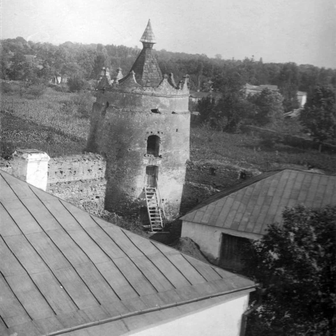 1920-і рр. (?) Загальний вигляд з даху костелуРозмір зображення: 1166:1166 піксел Фото Стефана Таранушенка і Павла Жолтовського з експедиції Харківського музею українського мистецтва. 1920-і рр. (?) Опубліковано 3.12.2019 р. |