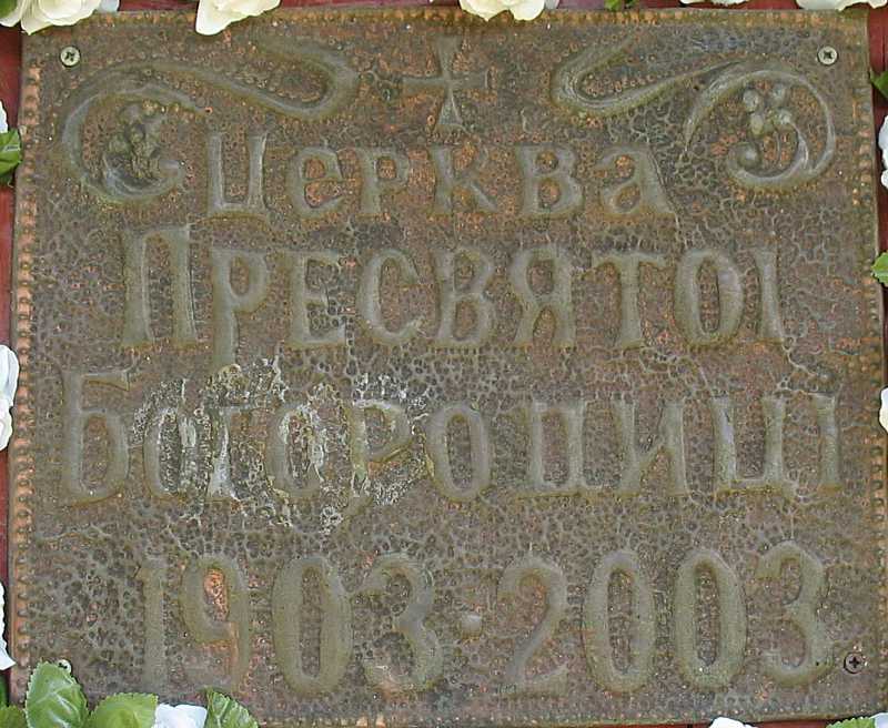 Напис «Церква пресвятої Богородиці 1903 – 2003».