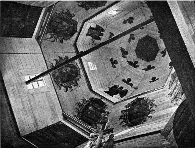 Баня, вигляд з середини п’ятибанної церкви, с. Лїсовичі, пов. Тараща в Київщині Джерело: Українське мистецтво. І. Деревляне будівництво і різьба на дереві / В.Щербаківський. – Льв.: 1913 р., № 20.