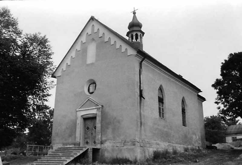 Костел: орієнтація вівтаря 3° в центрі села біля головної вулиці (С3). Спостереження М.І.Жарких, 19 серпня 1991 р.