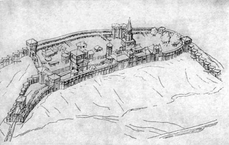 Замок у Любечі Чернігівської обл., XI-XII ст. Реконструкція Б. О. Рибакова.
