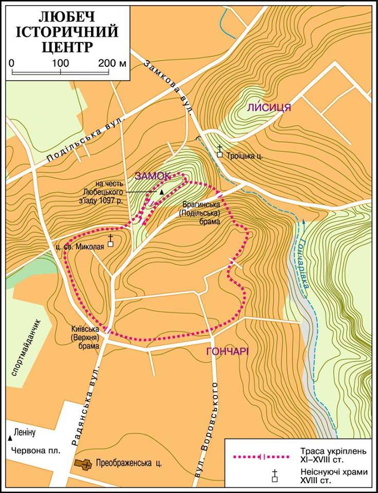 План центру м. ЛюбечРозмір зображення: 735:960 піксел Карта накреслена Дмитром Вортманом, опублікована 14.02.2014 р. |