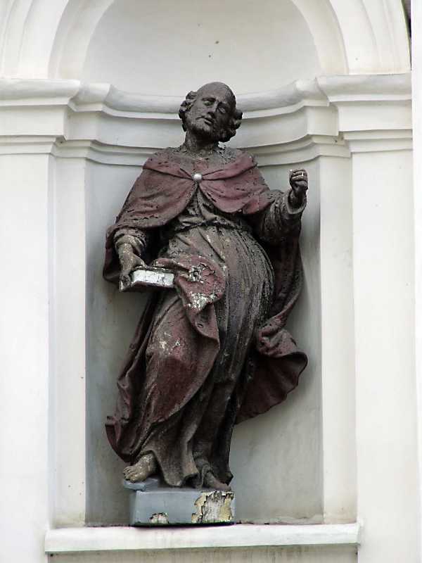 Підпис на дошці над цією нішею вказує, що тут мав би стояти св.Петро, але ця фігура на Петра не схожа. Взагалі всі скульптури, які нині виставлені в нішах, здається, походять з інших храмів.