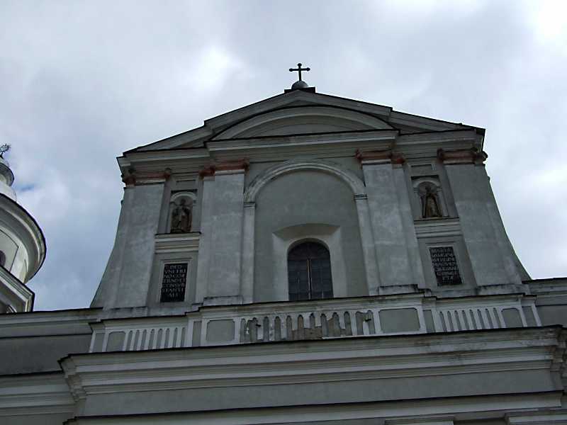 Фронтон Розмір зображення: 800:600 піксел 9 квітня 2012 р. Фото М.І.Жарких. Вкладені елементи Скульптура святого в лівій ніші Плита з написом у лівій ніші Плита з написом у правій ніші