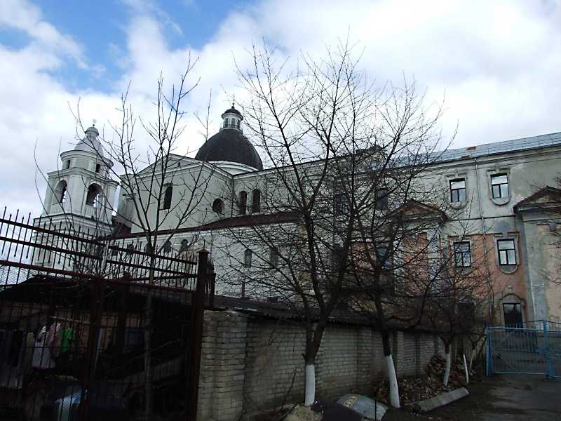 2012 р. Башта костелу і корпус келій в ракурсі. Вигляд з північного заходу