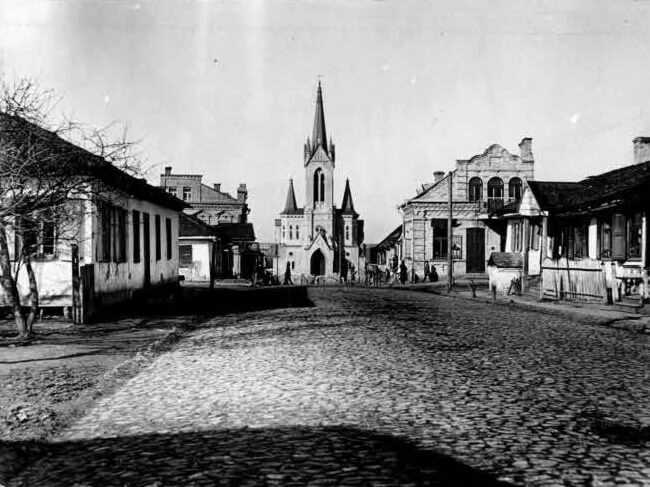 [1914..1918 рр.] Перспектива вул. Кафедральної із кірхоюРозмір зображення: 650:487 піксел Фото часу 1-ї світової війни (1914 – 1918 рр.) опублікувала Тетяна Яцечко-Блаженко 9.08.2018 р. |