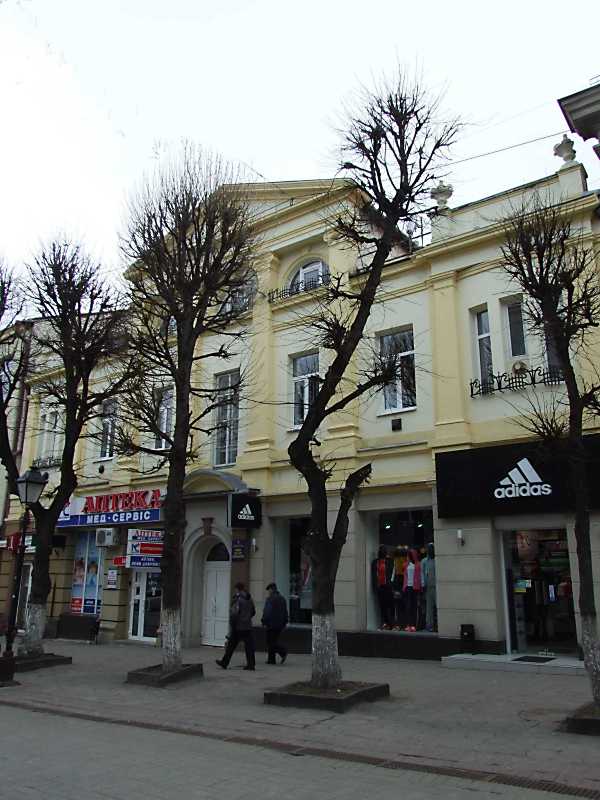 Будинок (№ 61) Розмір зображення: 600:800 піксел 9 квітня 2012 р. Фото М.І.Жарких. Вкладені елементи Фрагмент головного фасаду
