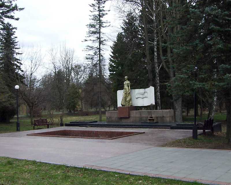 2012 р. Загальний вигляд з позиції А3 Розмір зображення: 800:643 піксел 9 квітня 2012 р. Фото М.І.Жарких. Вкладені елементи Скульптура на постаменті Постать Лесі Українки (+)