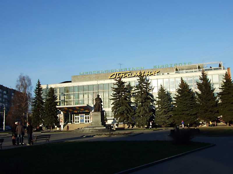 2012 р. Панорама площі з пам’ятником Розмір зображення: 800:600 піксел 9 квітня 2012 р. Фото М.І.Жарких. Вкладені елементи Пам’ятник на тлі кінотеатру «Промінь» (+)
