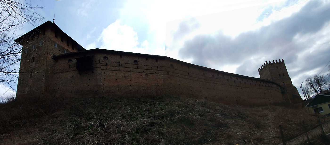 2012 р. Панорама з півночі Розмір зображення: 1400:617 піксел 9 квітня 2012 р. Фото М.І.Жарких. Вкладені елементи Владична башта Північний мур і Надбрамна башта
