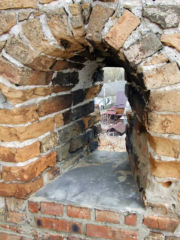 Бійниця на рівні бойової площадки Розмір зображення: 600:800 піксел 9 квітня 2012 р. Фото М.І.Жарких. Вище | Наступна сторінка