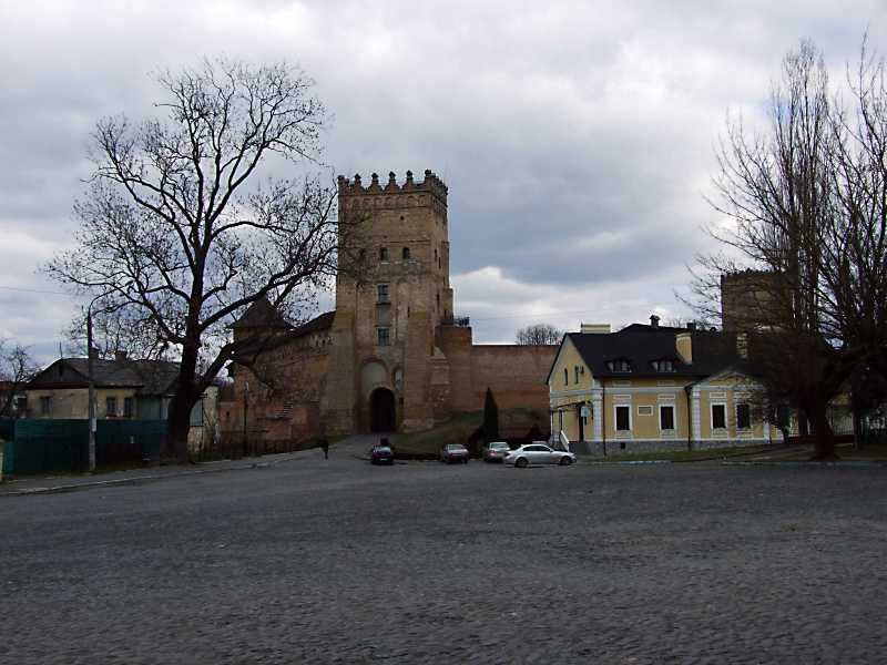 2012 р. Загальний вигляд із заходуРозмір зображення: 800:600 піксел 9 квітня 2012 р. Фото М.І.Жарких. Ліворуч – будинок Пузин (Кафедральна, 23), праворуч – будинок по вул. Плитниця, 1. |