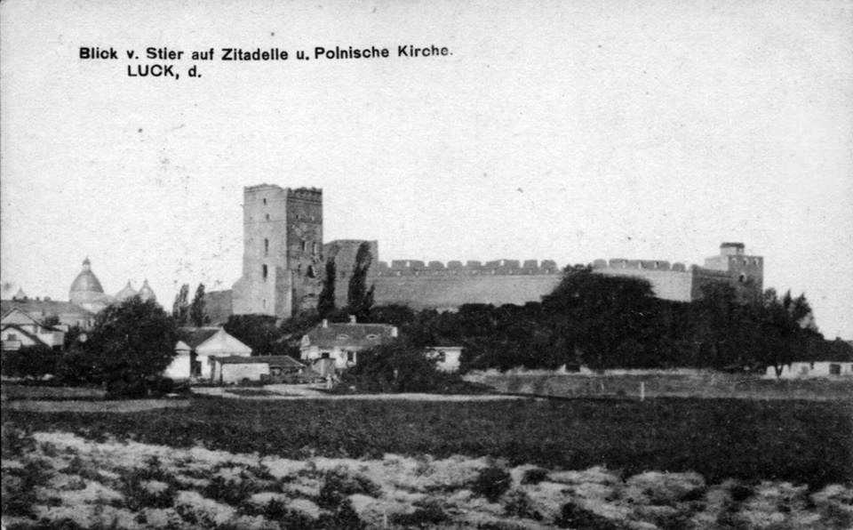 1916 р. (?) Загальний вигляд з південного заходуРозмір зображення: 960:596 піксел Австрійська (?) поштівка 1916 (?) р. з німецьким написом з альбому «Дубенський форт-застава» |