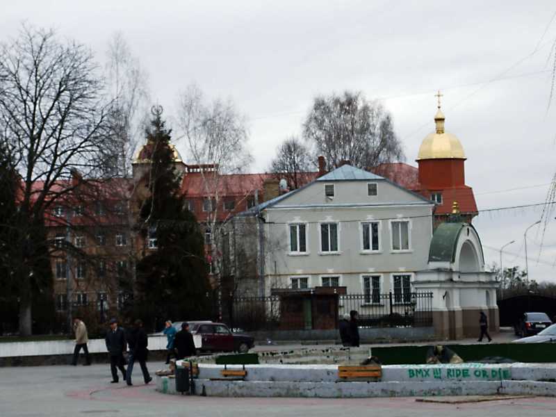 Брама на тлі будинків при соборі Розмір зображення: 800:600 піксел 9 квітня 2012 р. Фото М.І.Жарких. Вище | Наступна сторінка