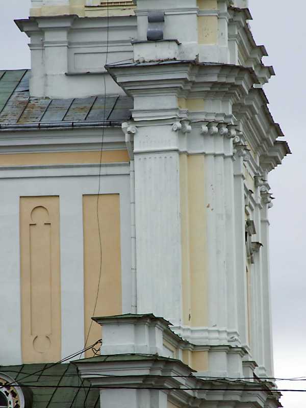 Верхній ярус головного фасаду в ракурсі Розмір зображення: 600:800 піксел 9 квітня 2012 р. Фото М.І.Жарких. Попередня сторінка | Вище | Наступна сторінка
