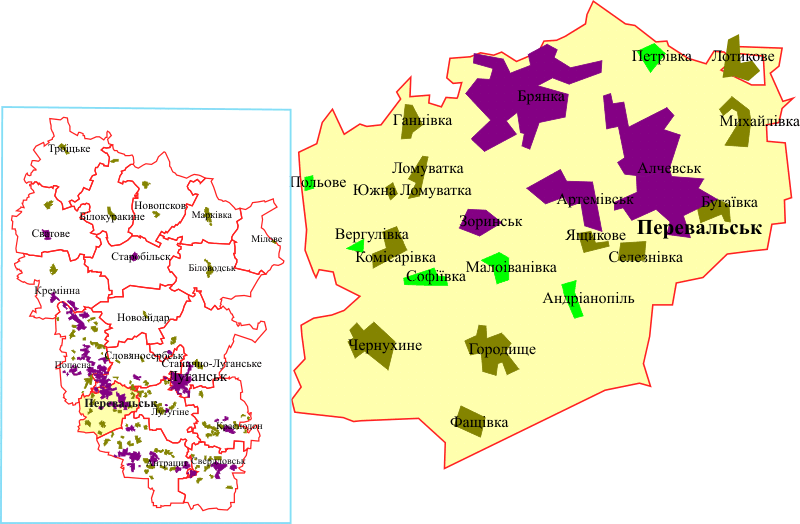 Верховна Рада України постановляє (07.10.2014, № 1693-VII): 1. Змінити межі Перевальського і Попаснянського районів Луганської області, збільшивши територію Попаснянського району на 14174,00 гектара земель за рахунок передачі до його складу 8430,00 гектара земель, що знаходяться у віданні Чорнухинської селищної ради Перевальського району (в тому числі території селища міського типу Чорнухине, селища Круглик, селища Міус), 1324,00 гектара земель – Гірської міської ради (в тому числі територію міста Гірське), 2491,00 гектара земель – Золотівської міської ради (в тому числі територію міста Золоте), 971,00 гектара земель – Нижненської селищної ради (в тому числі територію селища міського типу Нижнє), 913,00 гектара земель – Тошківської селищної ради Первомайської міської ради (в тому числі територію селища міського типу Тошківка), 45,00 гектара земель – Новотошківської селищної ради Кіровської міської ради (в тому числі територію селища міського типу Новотошківське), та затвердити територію Перевальського району загальною площею 72255,00 гектара, Попаснянського району загальною площею 146649,00 гектара. 2. Встановити межі Попаснянського району та відповідні межі Перевальського району Луганської області згідно з додатком.