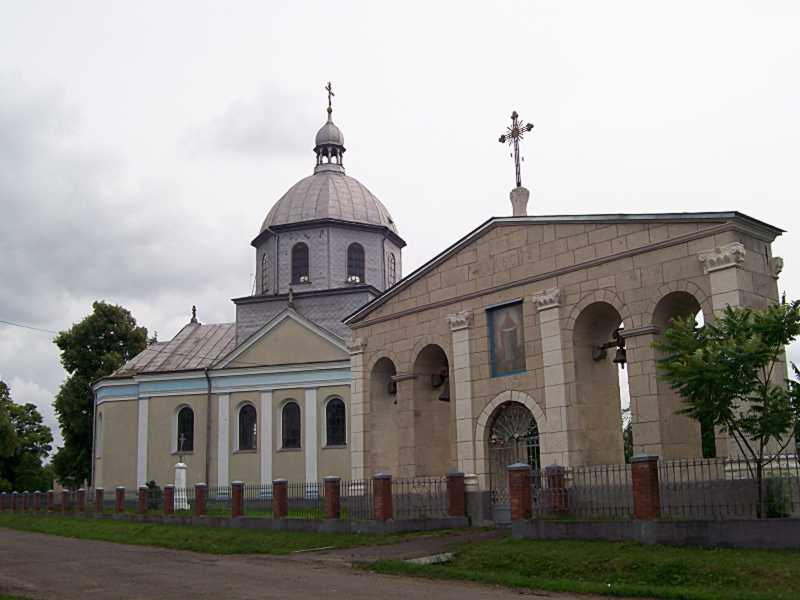 Церква 1885 р. розташована в центрі села на головній вулиці. Вівтарем вона орієнтована на схід. Дзвіниця розташована в позиції А4. Спостереження М.І.Жарких, 15.08.1988 р.