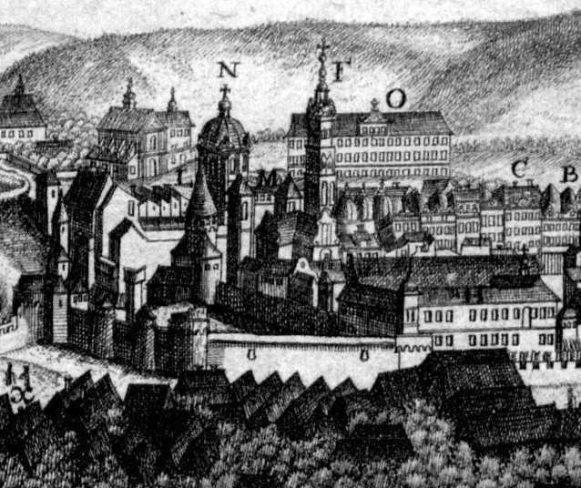 Частина панорами – 4Розмір зображення: 638:536 піксел B – палац губернатора C – [будинок] головного командувача F – руська церква (eglise des rosniakes) O – [кляштор] піари |